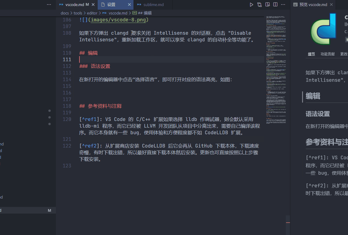 由于功能冲突,安装 clangd 扩展后 C/C++ 扩展的 IntelliSense 功能将被禁用(调试等功能仍然使用 C/C++ 扩展)。如果 clangd 扩展的功能出现问题,可以查看是否禁用了 C/C++ 扩展的 IntelliSense 功能。