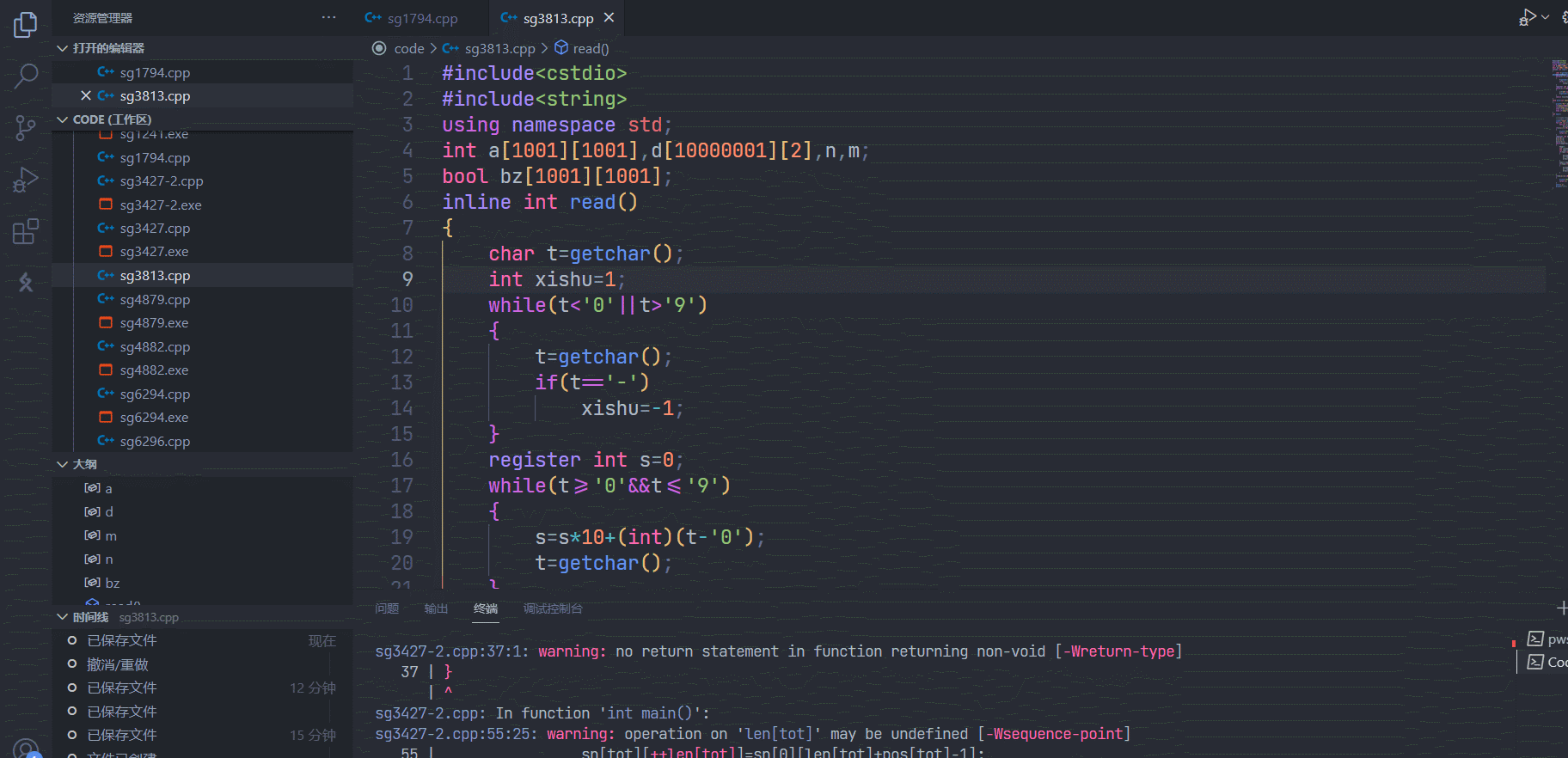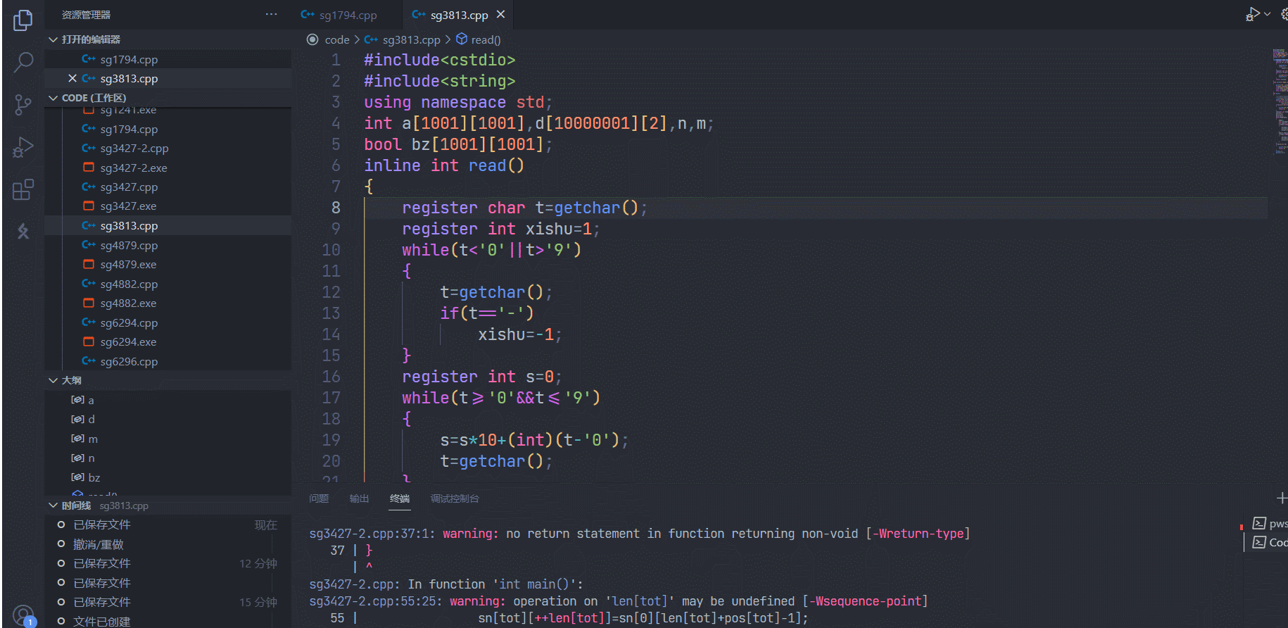 若要在以后使用 VS Code 编译并调试代码,所有的源代码都需要保存至这个文件夹内。若要编译并调试其他文件夹中存放的代码,需要重新执行上述步骤(或将旧文件夹内的 .vscode 子文件夹复制到新文件夹内)。